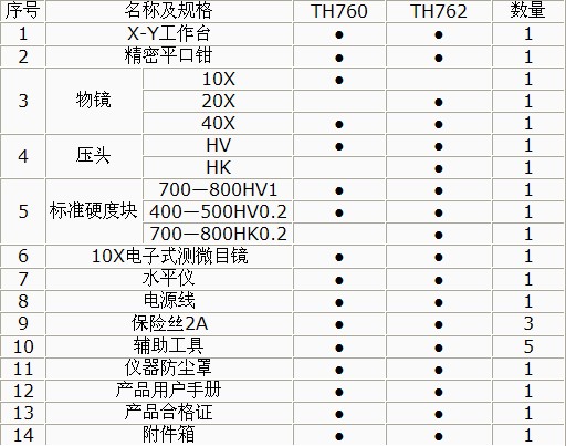 TH760單壓頭系列、TH762雙壓頭系列標準配置明細表